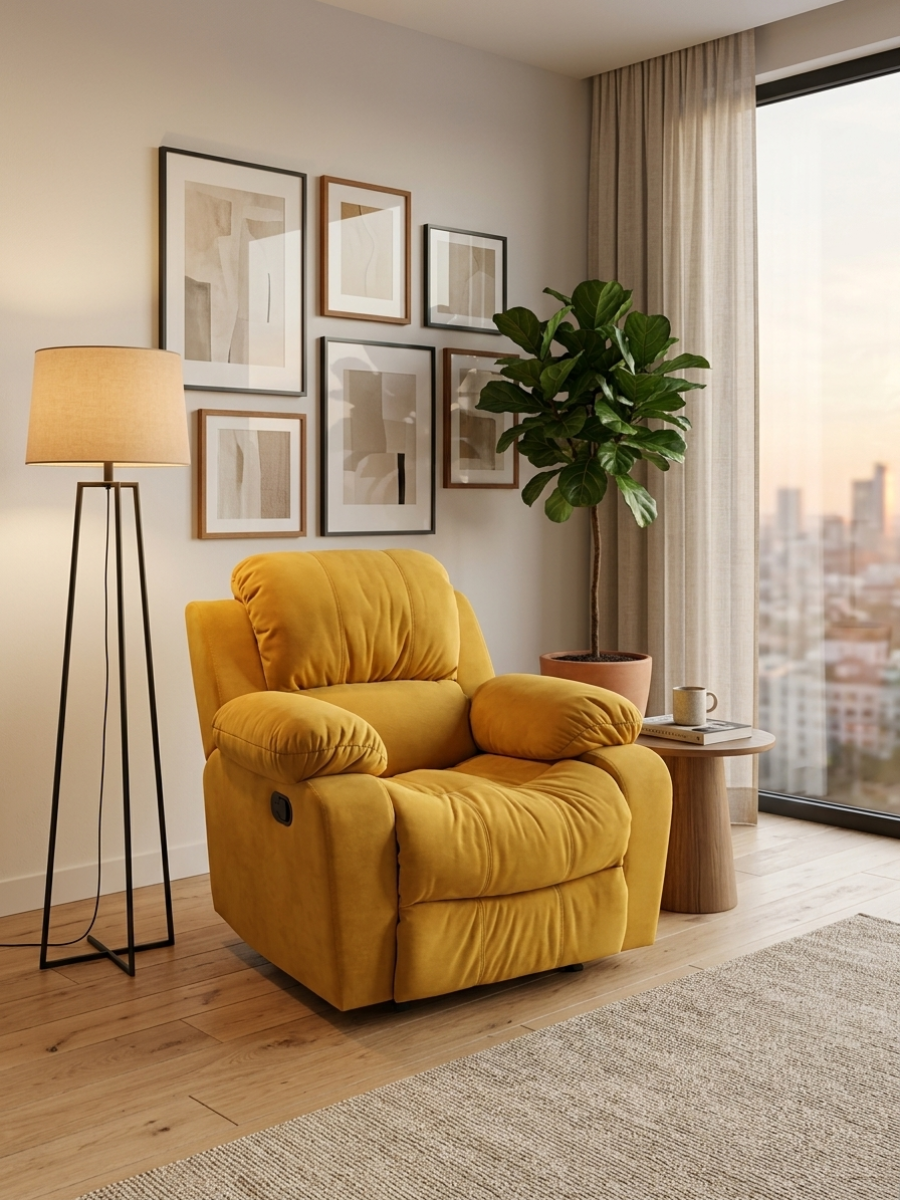 Трансформируйте отдых под себя: регулируемая спинка, выдвижная подножка и эргономичная поддержка спины. Кресло‑реклайнер подстраивается под ваше настроение — от рабочего режима до полного релакса