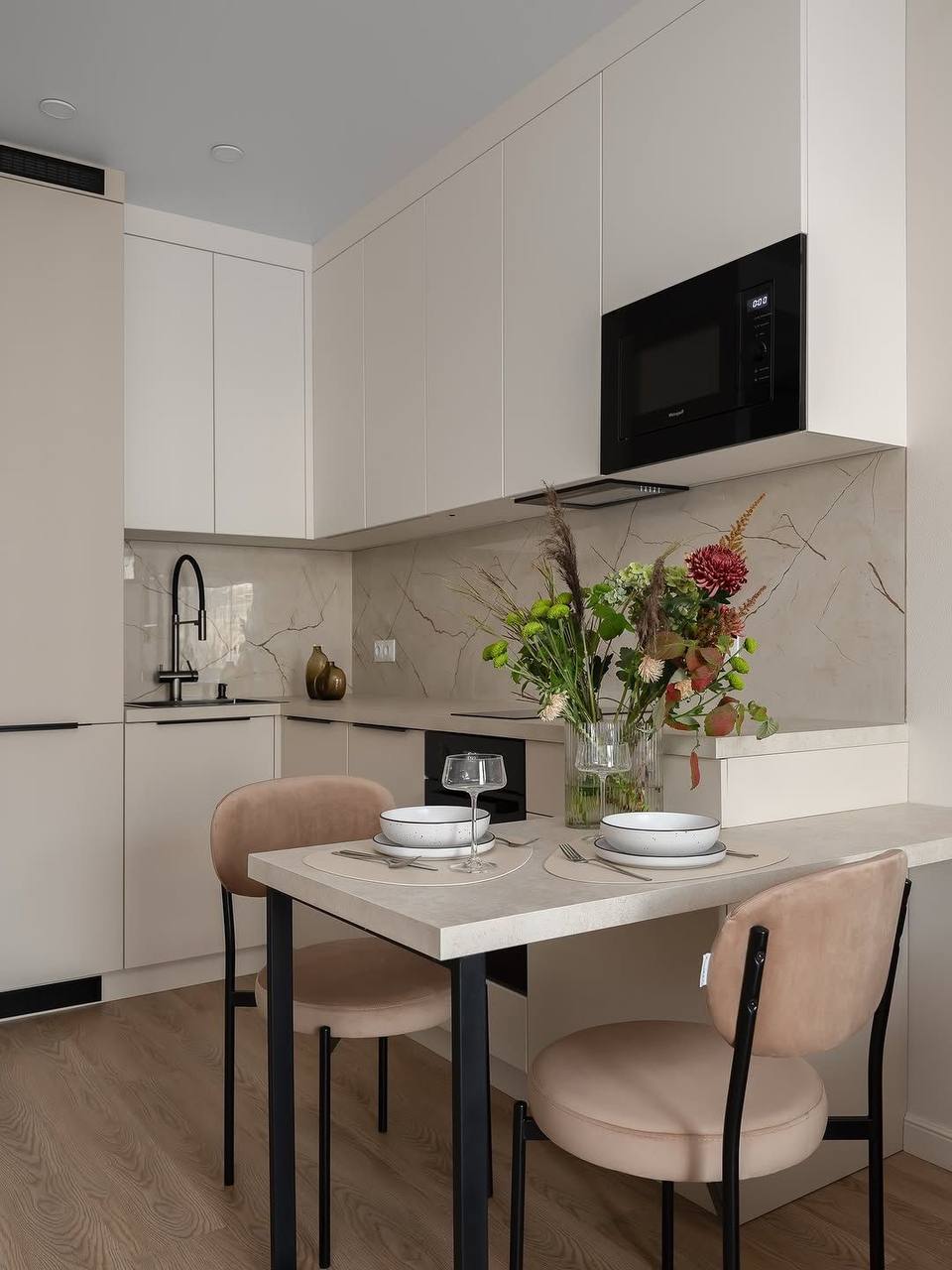 Кухня с мраморным фартуком