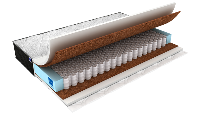 Надежный и уютный матрас с высоким ортопедическим эффектом. Увеличенное число пружин на спальное место позволит равномерно распределить вес тела, а ортопедическая пена обеспечит деликатную поддержку. Соприкосновение с гладкой и шелковистой спальной поверхностью подарит приятное чувство, от которого вы не захотите отказаться, испытав его хотя бы однажды. Состав: - трикотажный чехол, простеганный на высокообъемном наполнителе, дающий дополнительный комфорт и мягкость - ортопедическая пена (30 мм) - латексированное кокосовое волокно (10 мм) - пружинный блок шахматы - система усиления по периметру
