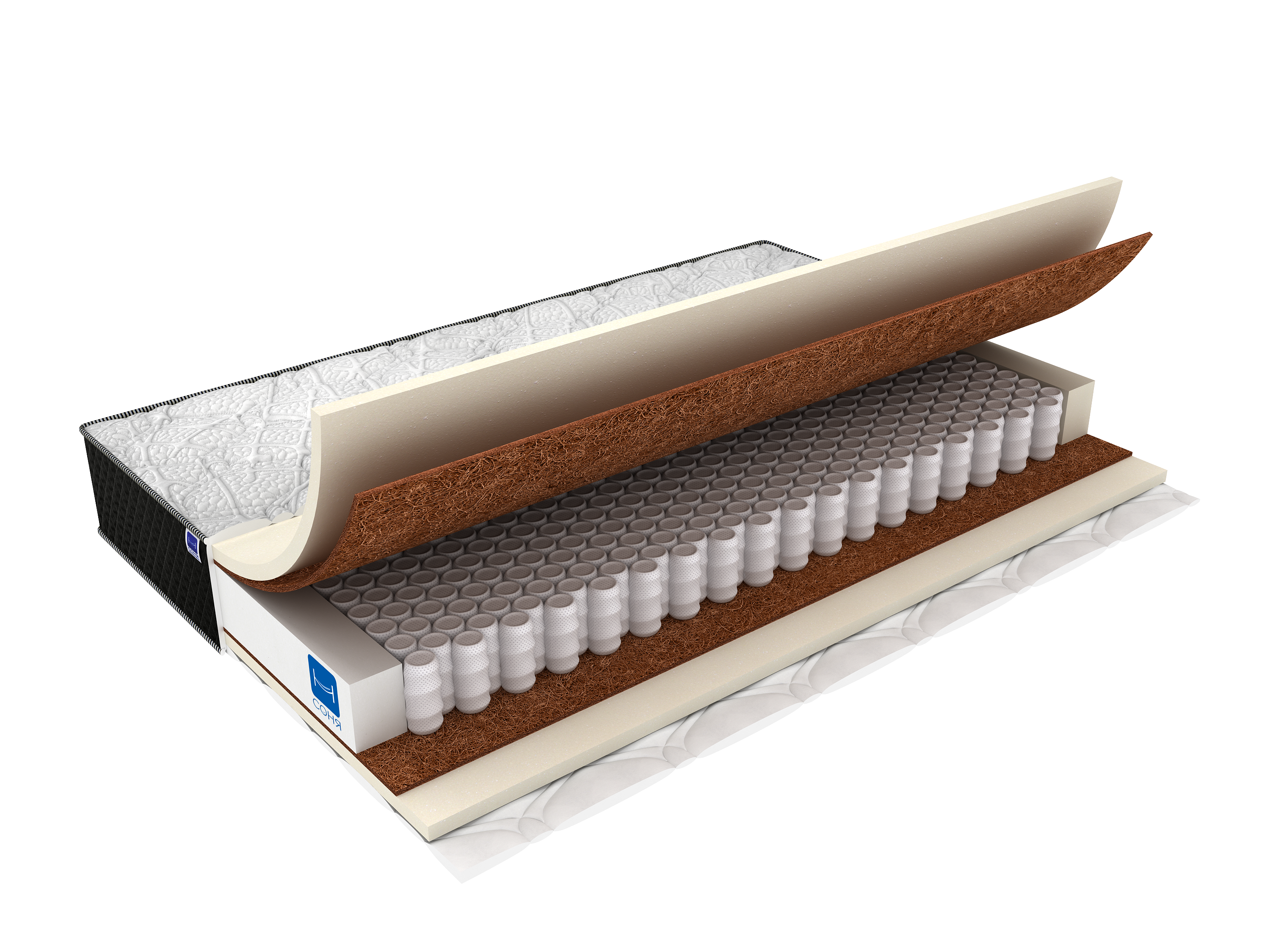 Шикарный матрас для истинных ценителей комфорта. В данной модели ярко выражена синергия двух элементов, их идеальное партнерство. Высокий ортопедический эффект независимых пружин и великолепные ортопедические свойства материала с эффектом памяти и кокосового волокна создают совершенную систему анатомической поддержки и обеспечивают максимально возможное расслабление мышц и суставов. - трикотажный чехол, простеганный на высокообъемном наполнителе, дающий дополнительный комфорт и мягкость - пена с эффектом памяти формы (40 мм) - латексированное кокосовое волокно (10 мм) - пружинный блок шахматы - система усиления по периметру